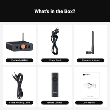 Fosi Audio HT4S on kompakti all-in-one minivahvistin, joka yhdistää sekä DAC- että tehovahvistuksen. Se tukee jopa 5 kanavaa ja voidaan vaihtaa 4.1- ja 5.0-kanavien välillä, mikä tekee siitä joustavan eri äänijärjestelmille. HT4S tarjoaa useita sisääntulovaihtoehtoja, kuten Bluetooth, AUX ja optinen, ja tukee sekä passiivisia kaiuttimia että subwoofereita.Tekniset tiedot: