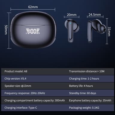 A8 Smart Voice Translation -kuulokkeet 150 kielellä Online-kääntäjä Bluetooth-yhteensopiva korvakuulokkeet【Monikielinen käännös】Tukee 150 kielellä online-käännöksiä, mikä mahdollistaa saumattoman viestinnän eri kielitaustoilla.【Laadukas ääni】 VarusteTutustu ominaisuuksiin