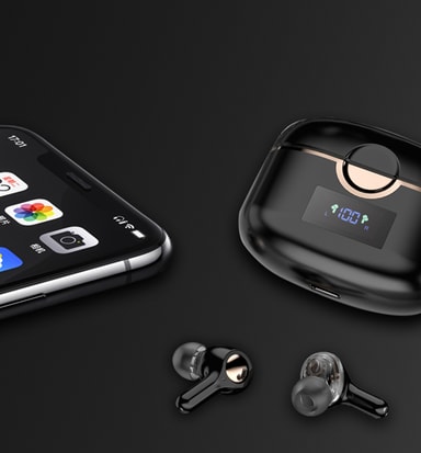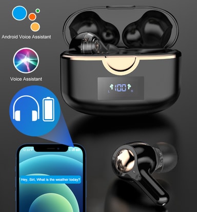 Langaton latauskotelo LED-näytöllä: 300 mAh:n latauskotelo tukee langattomien kuulokkeiden neljänkertaista latausta. LED-virtanäyttö näyttää kuulokkeiden ja latauskotelon lataustilan.