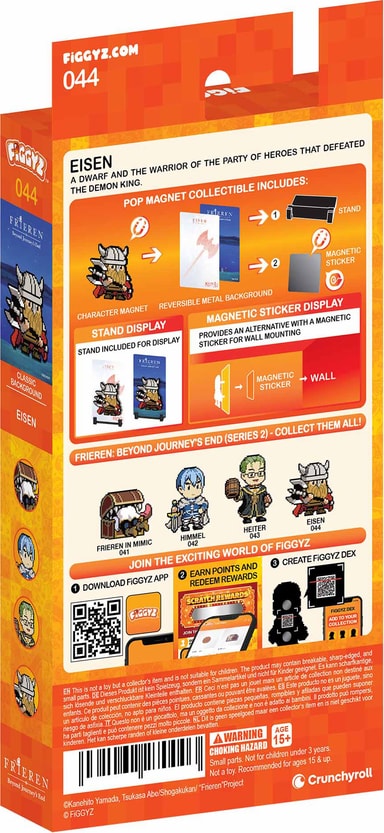 First 4 Figures FiGGYZ Frieren Beyond Journey's End -hahmomagneetti sisältää käännettävän metallisen takalevyn, joka tarjoaa kaksi esillepanovaihtoehtoa, pikselitaidetyylisen hahmon, 3D-pop-out-efektin, esillepanopohjan ja magneettisen tarran.Tutustu ominaisuuksiin