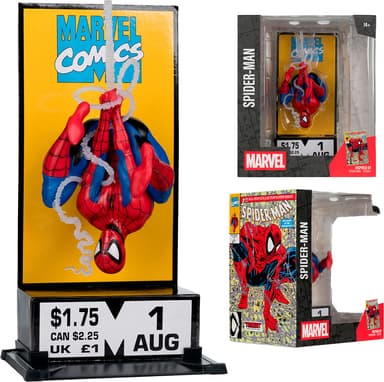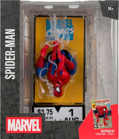 McFarlane Marvel Collection -toimintafiguuri on 1:10-mittakaavainen Spider-Man-keräilyesine, jonka mukana tulee taidekortti, jossa on hahmon taideteoksia ja sarjakuvan synopsis. Se on saanut inspiraationsa Spider-Man #1 -sarjakuvan kulmalaatikosta.Tutustu ominaisuuksiin