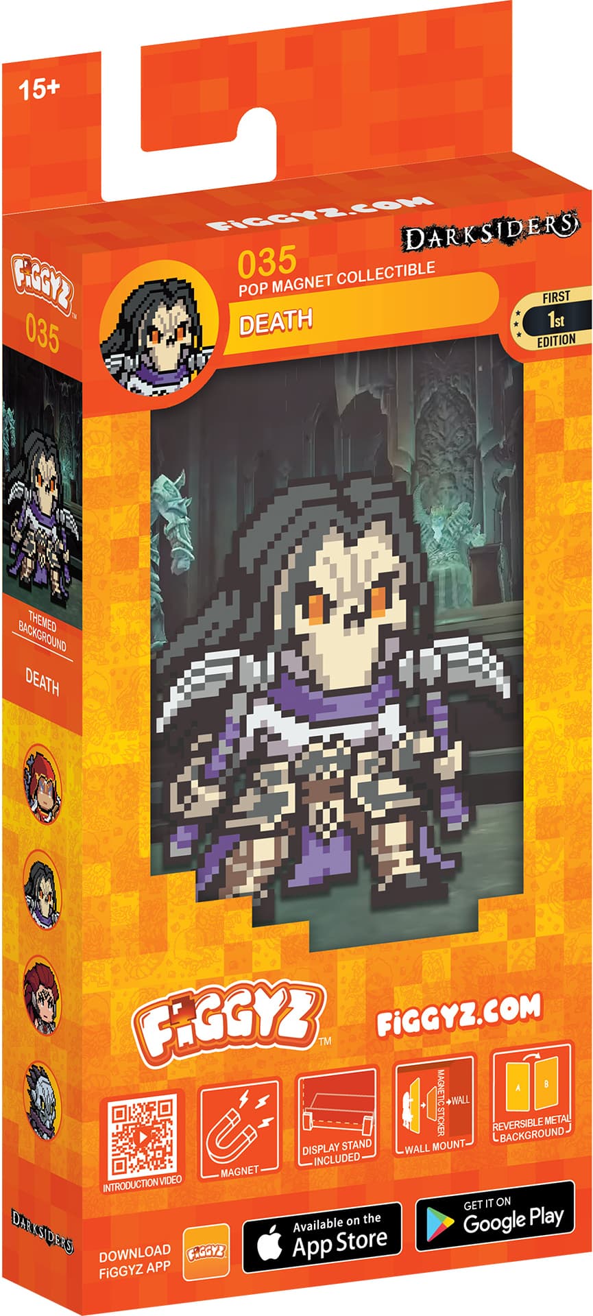 First 4 Figures Figgyz Darksiders Pop Magnet -toimintafiguuri sisältää käännettävän metallilevyn kahdella eri näyttövaihtoehdolla, pikselitaiteisen hahmon, 3D-magneettisen pop-out-efektin, näyttöjalustan ja magneettisen tarran.Tutustu ominaisuuksiin
