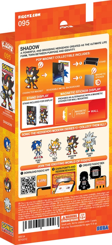 Magneettinen First 4 Figures FiGGYZ Shadow -toimintafiguuri Sonic the Hedgehog -pelistä (Modern). Sisältää 3D-ulkoneman MagMounts-tekniikalla, hyllytuen ja magneettitarran monipuoliseen, käännettävään esillepanoon.Tutustu ominaisuuksiin