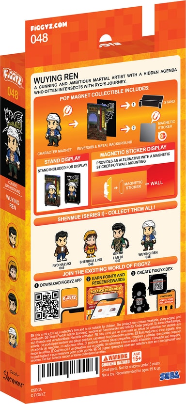 Tässä on magneettinen First 4 Figures FiGGYZ Wuying Ren -toimintafiguuri Shenmue-pelistä. Tämä pikselitaide sisältää 3D-ulkoneman MagMounts-kiinnityksellä sekä hyllypohjan ja magneettitarran joustavaa, käännettävää esillepanoa varten.Tutustu ominaisuuksiin