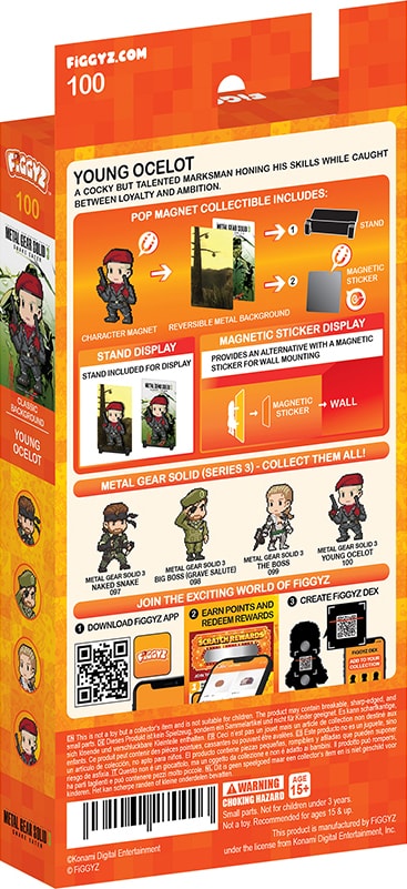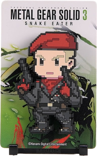 First 4 Figures FiGGYZ Metal Gear Solid 3 -hahmomagneetti sisältää käännettävän metallisen takalevyn, joka tarjoaa kaksi esillepanovaihtoehtoa, pikselitaidetyylisen hahmon, 3D-pop-out-efektin, esillepanopohjan ja magneettisen tarran.Tutustu ominaisuuksiin