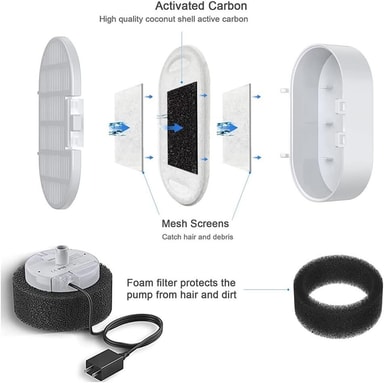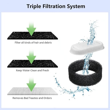 Monikerroksisella suodatusjärjestelmällä varustettu suihkulähteemme suodattaa tehokkaasti epäpuhtaudet, hajut ja hiukkaset vedestä varmistaen, että lemmikilläsi on pääsy puhtaaseen ja raikkaaseen veteen.Tutustu ominaisuuksiin