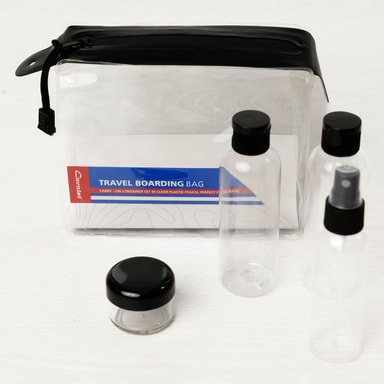 Cavalet reseflaskor för att ta med vätska i kabinen. Flaskorna ligger i en plastnecessär med dragkedja.