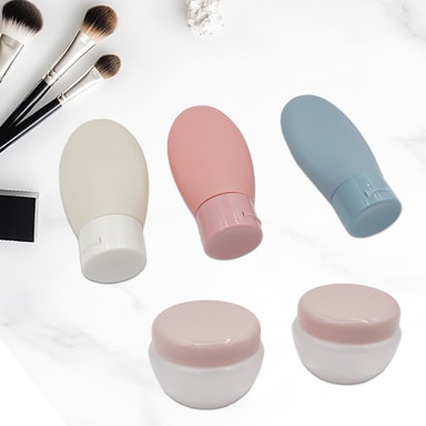 Kaikkeen mitä tarvitset: Matkapullosarja useissa eri malleissa - täydellinen kaikille erityyppisille tuotteille, jotka haluat ottaa mukaasi ilman, että sinun tarvitsee raahata kaikkia suuria shampoo-, suihkuvoite-, voide-, kasvovesipulloja jne.