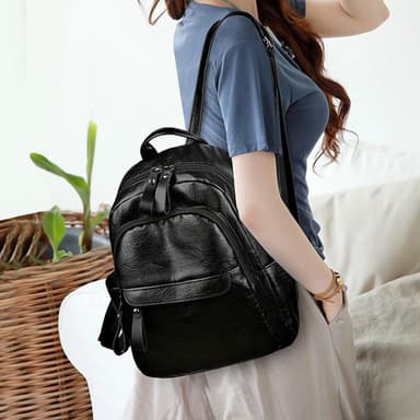 Tyylikäs ja monipuolinen: Tämä musta reppu yhdistää saumattomasti muodin ja käytännöllisyyden, mikä tekee siitä ihanteellisen asusteen erilaisiin tilaisuuksiin. Olitpa menossa kouluun, töihin tai rentoon illanviettoon, sen tyylikäs muotoilu täydentää mitä tahansa asua. Pehmeä PU-nahkapinta huokuu hienostuneisuutta, kun taas tilava sisätila tarjoaa runsaasti tilaa olennaisille tavaroillesi. Kannat tavarasi tyylikkäästi ja anna lausunto minne ikinä menetkin tällä monipuolisella repulla.