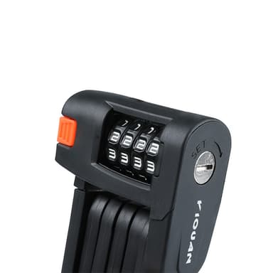Kompakti taittuva muotoilu: Tämä lukko on suunniteltu kätevästi kokoon taittuvaksi, joten sitä on helppo kantaa ja säilyttää. Se mahtuu reppuun tai on helppo kiinnittää polkupyörän runkoon.