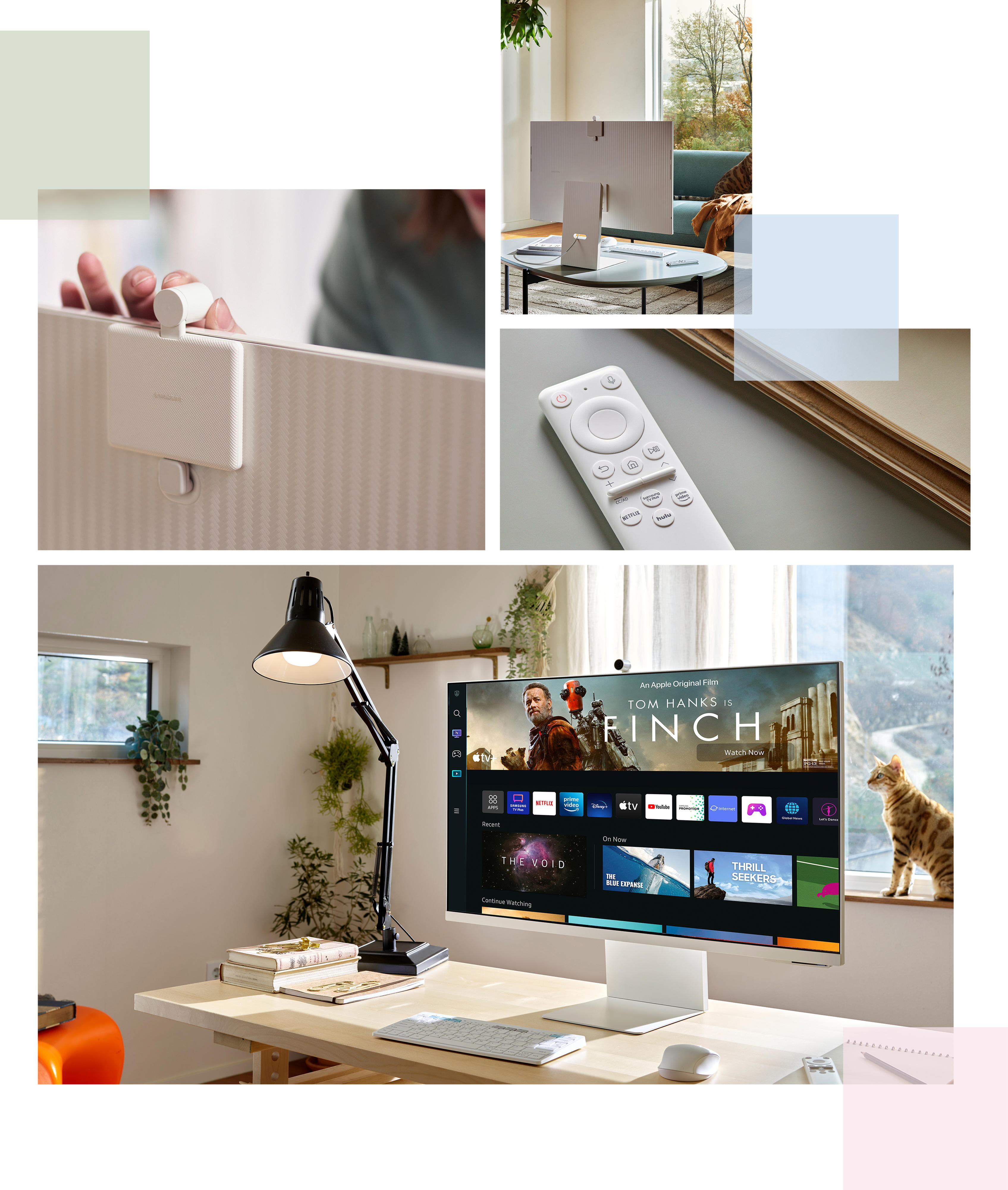 Nyt voit selata verkkosivuja, muokata asiakirjoja ja työstää projekteja ilman erillistä tietokonetta. Uudessa Workmode-tilassa voit myös luoda etäyhteyden toiseen tietokoneeseen, käyttää Microsoft 365 -ohjelmia ja jopa muodostaa yhteyden Samsung-mobiililaitteisiin Samsung DeXin kautta. Siten voit työskennellä tehokkaasti.* Myös AirPlay toimii näytöllä, jotta voit yhdistää Apple-laitteet langattomasti ja nauttia suosikkisisällöstäsi iPhonelta, iPadiltä tai Maciltä. Peilaa sovellukset, asiakirjat ja verkkosivustot suuremmalle näytölle. Näytön SlimFit-kameran ansiosta voit pitää helposti yhteyttä kollegoihin ja ystäviin modernissa hybridityöympäristössä. Voit käyttää sovelluksia ja soittaa videopuheluja esim. Google Duolla suoraan näytöltä.