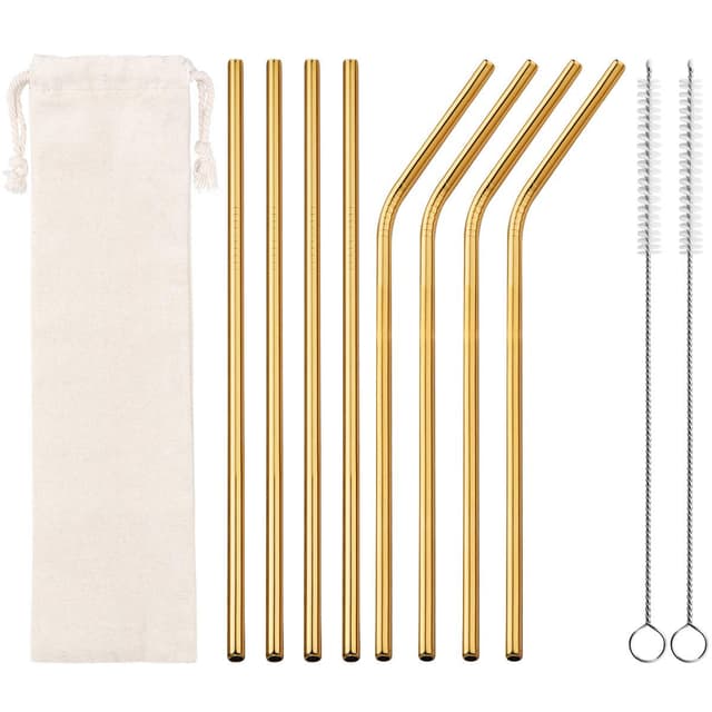 Ruostumattomasta teräksestä valmistettu olkisarja 11-osainen Kulta