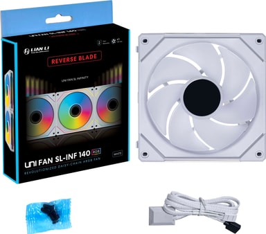 Lian Li UNI FAN SL INF Reverse 140 mm infinity RGB PWM -tuulettimen enimmäiskierrosnopeus on 1600 RPM, ja siinä on 40 kirkasta RGB LED -valoa. Käänteisillä lavoilla varustetussa tuulettimessa on myös magneettinen Fluid Dynamic Bearing -laakerointi.Tutustu ominaisuuksiin