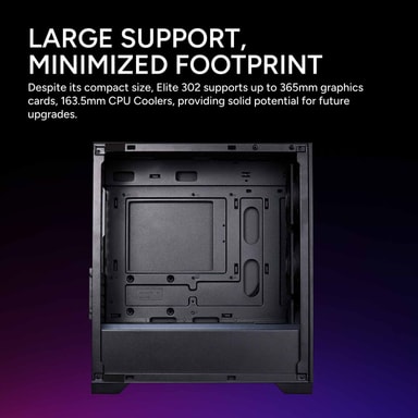 Cooler Master Elite 302 -tietokonekotelo on minitornikotelo microATX-kokoonpanoille. Siinä on työkaluvapaa magneettinen etupaneeli ja kolme 120 mm:n tuuletinta, jotka pitävät järjestelmän viileänä ja toimivana.Tutustu ominaisuuksiin