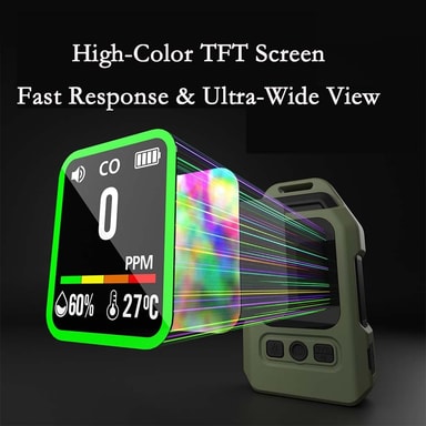 Kannettava hiilimonoksidi-ilmaisin: CO-mittari magneettikiinnityksellä, LED-valolla ja lämpötila-/kosteusnäytöllä Ruohon väri