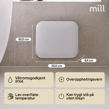 Pienikokoinen Mill lämpöpaneeli sopii lämmittämään kylpyhuonetta tai muita pieniä tiloja.Tutustu ominaisuuksiin