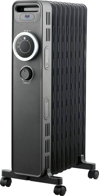 Apt-öljypatteri 1500Wtarjoaa tasaista lämpöä 7 rivallaan. Siinä on 3 lämpötila-asetusta, säädettävä termostaatti, kaatumis- ja ylikuumenemissuoja sekä johdon säilytyspaikka turvalliseen ja käytännölliseen käyttöön.Tutustu ominaisuuksiin