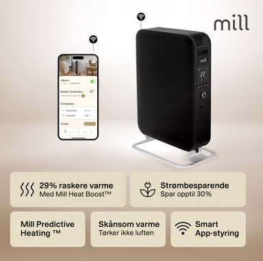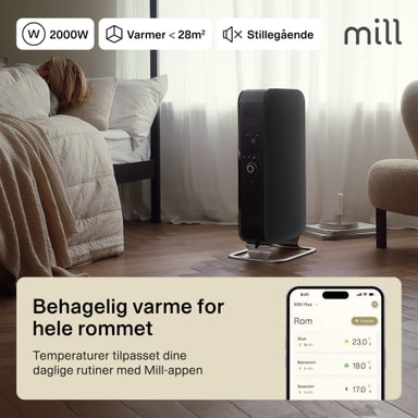 Pidä kotisi viihtyisänä Mill Gentle Air -öljylämmittimellä. Se sopii täydellisesti enintään 28 m² huoneisiin ja lämmittää tehokkaasti kuivattamatta ilmaa. Käytä Mill-sovellusta automaattiseen lämpötilan säätöön käytön mukaan.Tutustu ominaisuuksiin