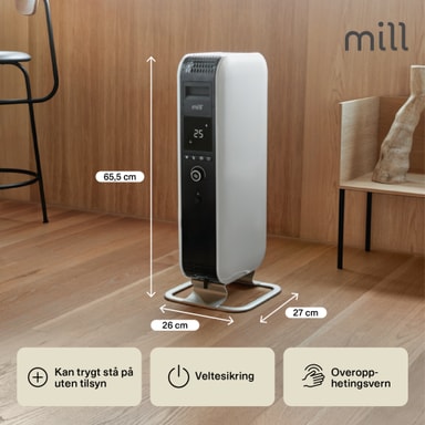 Öljytäytteisessä Mill Premium -lämmittimessä on pelkistetty, nykyaikainen muotoilu, LED-näyttö ja elektroninen termostaatti.Tutustu ominaisuuksiin