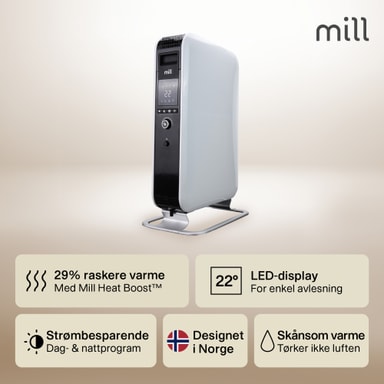Öljytäytteisessä Mill Premium -lämmittimessä on pelkistetty, nykyaikainen muotoilu, LED-näyttö ja elektroninen termostaatti.Tutustu ominaisuuksiin