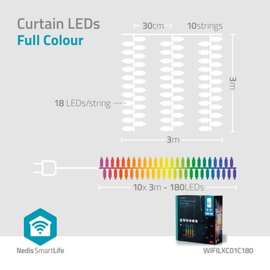 Nedis SmartLife Jouluvalot | Verho | Wi-Fi | RGB | 180 LED's | 3 m | Android™ / IOS