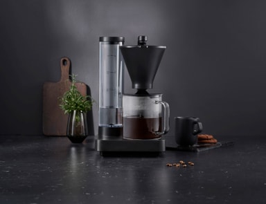 ECBC-hyväksytyssä Wilfa Performance Compact -kahvinkeittimessä on irrotettava litran vesisäiliö, automaattinen sammutustoiminto, tippalukko ja pumppujärjestelmä, joka tyhjentää laitteen vedestä keittämisen jälkeen puhtaamman makuista kahvia varten.Tutustu ominaisuuksiin