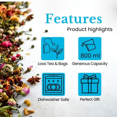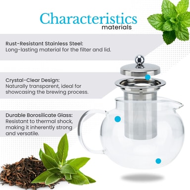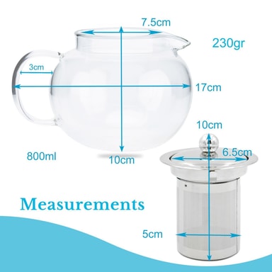 800ml lasikannu borosilikaattilasista, jossa seulapanos, lämmönkestävä, sopii kuumille ja kylmille juomille, teelle , kahvia, vettä ja paljon muuta.