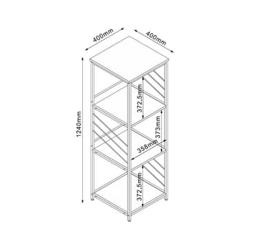 Hylly DIMITRA 40x40xH124cm, rustiikki/musta.Materiaali: melamiinilevy.Väri: vaalea rustiikki puu/musta.Hyllyrunko on valmistettu metallista ja viimeistelty mustalla jauhemaalauksella.Tutustu ominaisuuksiin
