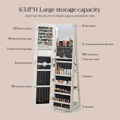 Käännettävä peilikaappi meikeille ja koruille - ValkoinenTutustu ominaisuuksiin