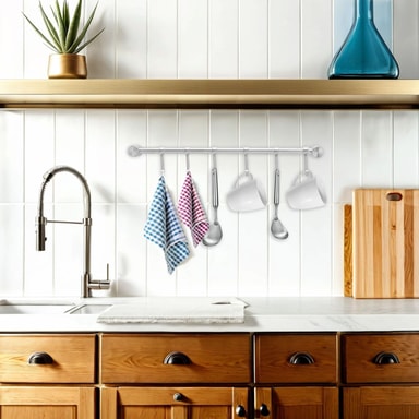 Ihanteellinen keittiöön: Siirrettävien koukkujen avulla voit säätää keittiölaitteiden välistä etäisyyttä optimaalisesti.