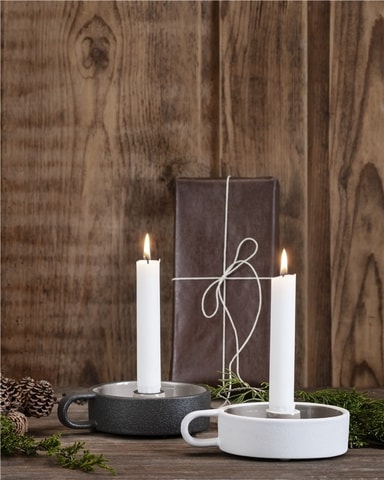 I vår nya designserie från Jon Eliasson kommer dessa ljusstakar. Snygga precis som de är eller fyll dem med läckerheter eller pynt som följer årstider/säsongen. Kombinera gärna med andra produkter från Jons serie. Färg: svart 99 Storlek: 5*12,5cm Material: keramik, emaljerad insida