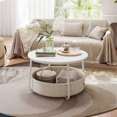 Pyöreä sohvapöytä säilytyskorilla - valkoinen/beigeTutustu ominaisuuksiin