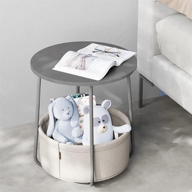 Pyöreä yöpöytä säilytyskorilla - harmaa/valkoinenTutustu ominaisuuksiin