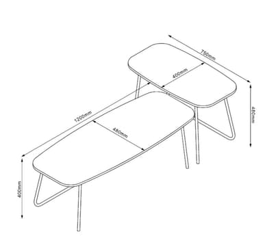 Sohvapöytä DUO 2kpl setti 120x48xH40cm, 75x40xH48cm, saarni/musta.Materiaali: melamiinilevy.Väri: tuhka/musta.Pöytien jalat ja rungot on valmistettu metallista ja viimeistelty mustalla jauhemaalauksella.Tutustu ominaisuuksiin