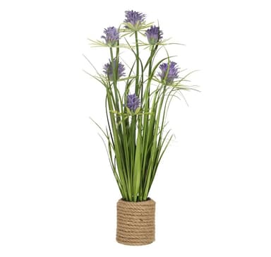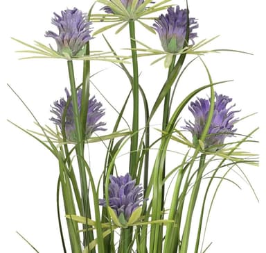 Tekokukka puutarhassa H70cm, violetti krysanteemi, ruoho ruukulla