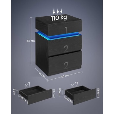 Yöpöytä RGB-valaistuksella 35x40x55cm - Svart