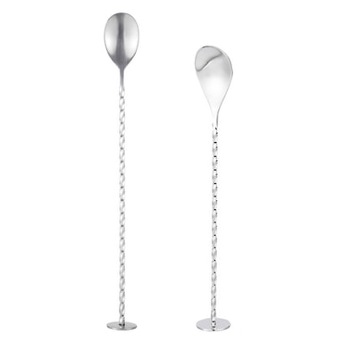 Optimaaliset pituudet: Tämä setti sisältää kaksi eri pituista lusikkaa, 20,5 cm ja 25,5 cm, mikä tarjoaa monipuolisuutta cocktailien sekoittamiseen erikokoisissa ja -tyylisissä laseissa.