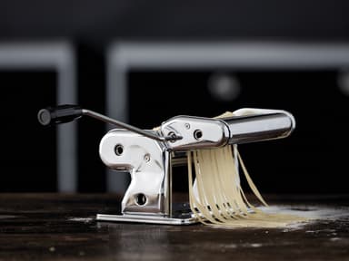 With the pasta machine you can make your own fresh pasta. Danish/Swedish/Norwegian user manual/recipes included. After each use, clean the machine with a soft brush or wooden stick. Size: 180 mm.Material: Stainless steelTutustu ominaisuuksiin