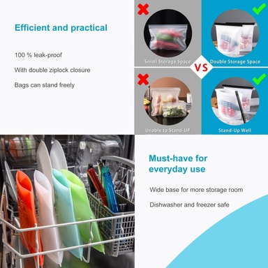 Ruokakassit Neljän uudelleenkäytettävän silikonisen