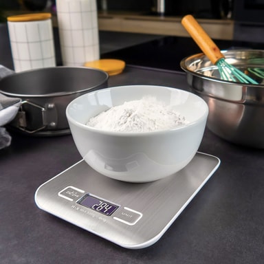 Digitaalinen keittiövaaka mahdollistaa ruoan nopean, tarkan ja helpon punnitsemisen ruoanlaitossa.