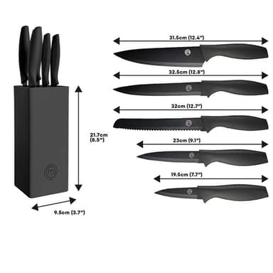Masterchef veitsisetti – 5 keittiöveistä ja veitsiteline, ruostumatonta terästäTutustu ominaisuuksiin