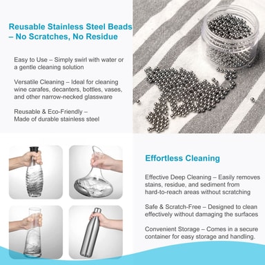 Saat 100 ruostumattomasta teräksestä valmistettua puhdistushelmeä, jotta lasiastioiden puhdistaminen olisi mahdollisimman helppoa. Säästä aikaa ja puhdista tehokkaasti ja turvallisesti.