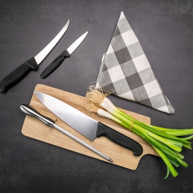 Korkealaatuisen materiaalin ansiosta veitsen teroitin on erityisen kestävä ja vankka. teroita keittiövälineitäsi luotettavasti vuosiksi eteenpäin!
