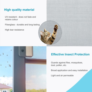 Kestävä lasikuituperhoverkko metrikokoisina. Suojaa hyönteisiltä ja ympäristön vaikutuksilta. UV-kestävyys estää haalistumista. Tavaraa maatilalleTutustu ominaisuuksiin