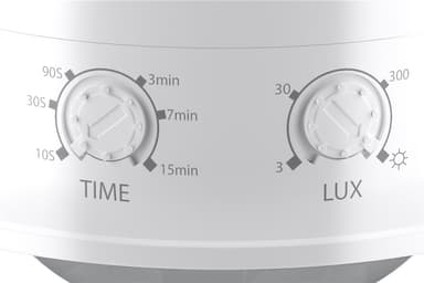 Valoherkkyys (3 lx - 2000 lx) ja sammutusviive (10 s - 15 min) helposti säädettävissä kiertosäätimellä
