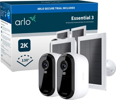 Arlo Essential 3 2K turvakamera (2 kpl) + Arlo aurinkopaneeli (2)