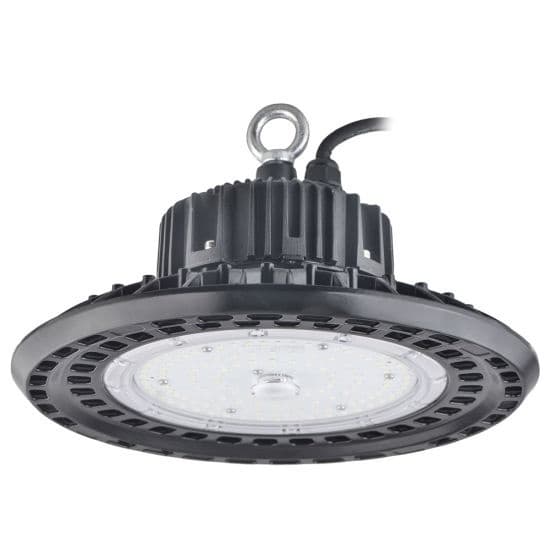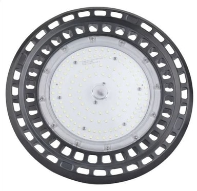 LED UFO Highbay 100W, 4000K. Teollisuuskäyttöön tarkoitettu valaisin varastoihin, ratsastushalleihin, työpajoihin, urheiluhalleihin jne. joissa on korkeat katot.