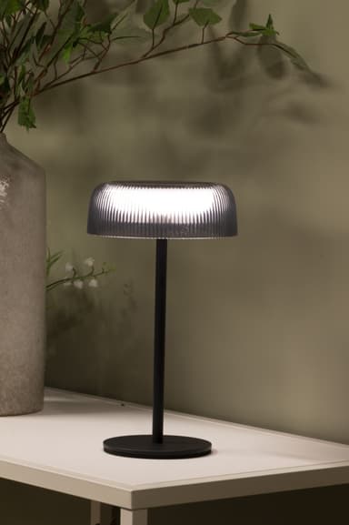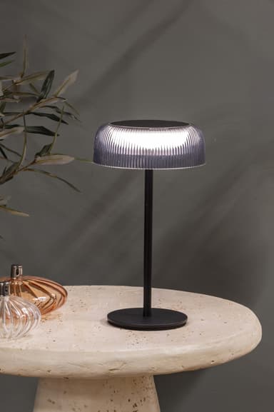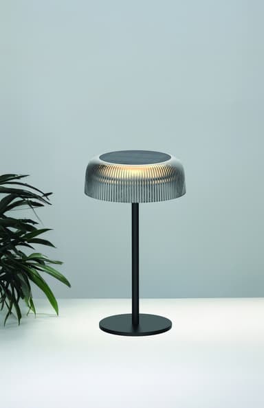 Musta ladattava Aura-pöytävalaisin sopii sisä- ja ulkokäyttöön. Siinä on USB-C- ja aurinkopaneelilataus, portaattomasti himmennettävä valo ja 6 tunnin valaisuaika. Se on täydellinen kodin tai toimiston valaistukseen.Tutustu ominaisuuksiin