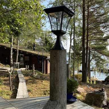 Ulkovalaisin Solar voidaan asentaa esimerkiksi aitauksen tai pylvään päälle. Valaisin valaisee 6-8 tuntia normaaleissa valaistusolosuhteissa.