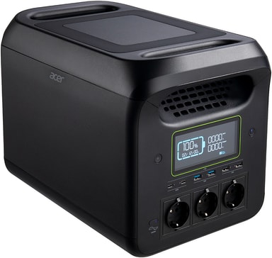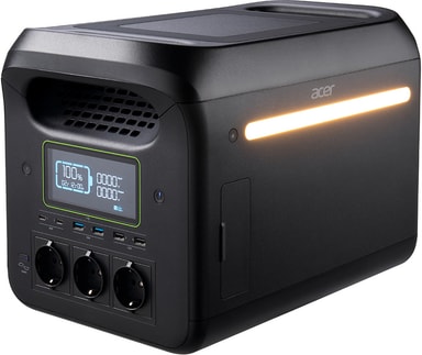 1800 W kannettavassa Acer-virta-asemassa on 12 AC- ja DC-ulostuloa, joilla voit syöttää virtaa useille laitteille samanaikaisesti. Kevyt laite tuottaa varavirtaa vain 14 millisekunnissa - ihanteellinen kannettaville tietokoneille ja autolaitteille.Tutustu ominaisuuksiin